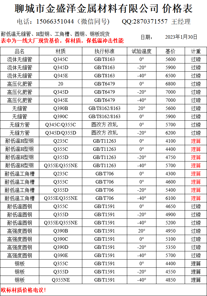 聊城市金盛澤金屬材料有限公司主營低合金/耐低溫無縫管,方矩管,H型鋼,工字鋼,角鋼,槽鋼,圓鋼,鋼板;現貨供應:大無縫、包鋼、煙寶、鳳寶正品耐低溫無縫管,專業(yè)加工生產無縫方矩管;經營一線品牌型材:萊鋼/包鋼/馬鋼/日鋼 耐低溫Q235B/C;Q355B/C/D/NE H型鋼(100*100-1000*300) 偏型號H型鋼鋼現貨:250/255,248/124,344/348,394/398,506/201,606/201,458/417,912/302,692/300,792/300 ;萊鋼/馬鋼/宣鋼產 耐低溫槽…